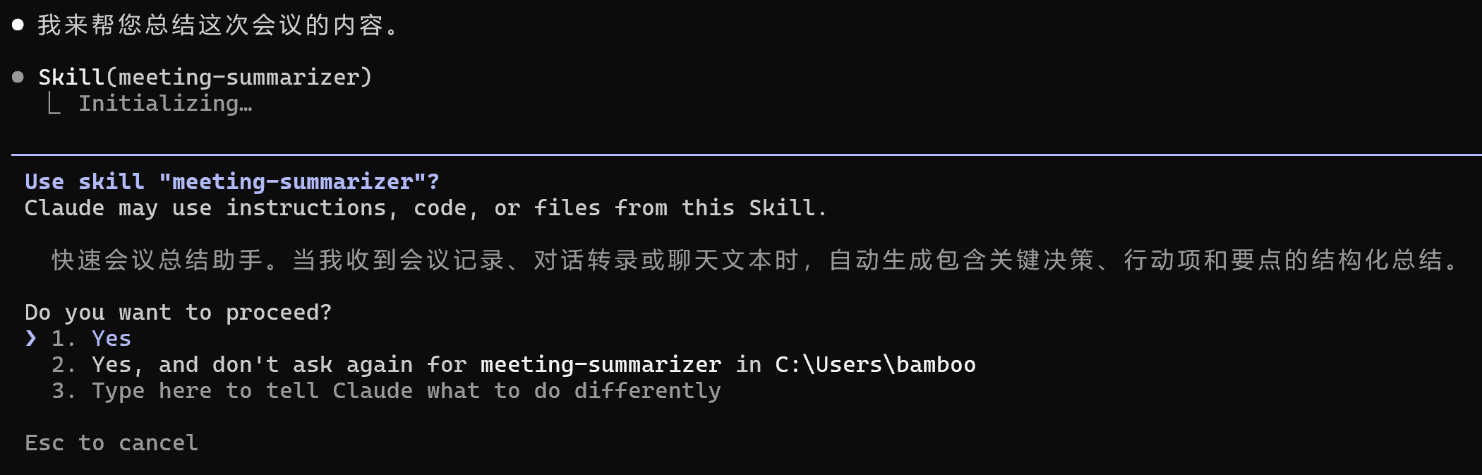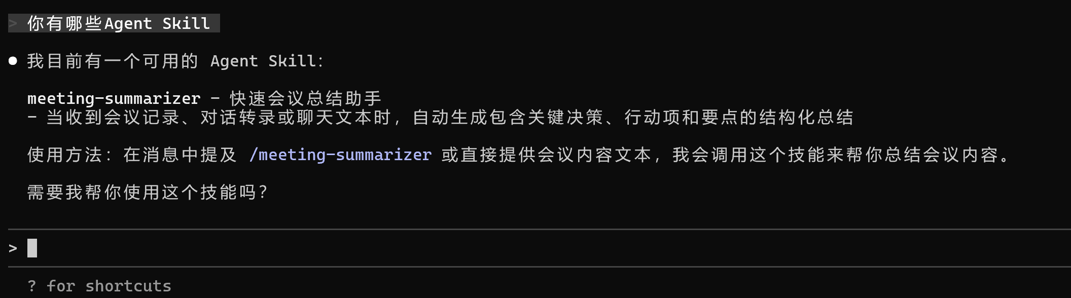 可以看到,claude能正确检测到我们刚刚创建的skill并且能正确识别它的功能